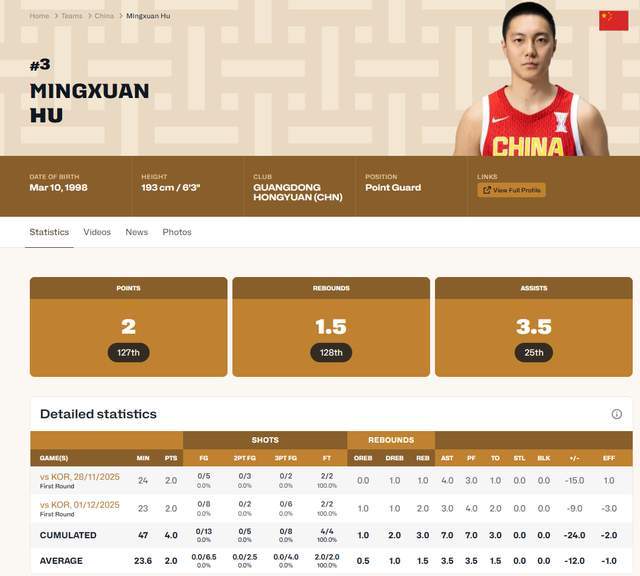 8中0的是胡明轩。他表现真的是辣眼睛。其实,这已经不是胡明轩第一次发挥不佳了,11月28日那场,他5投0中,到了这一场,则是来个了8投0中。显然,胡明轩的状态奇差无比,完全就不匹配这样的比赛强度,绝对是愧对了郭士强的信任的。