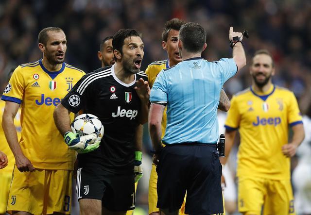 2018年4月11日,欧冠1/4决赛次回合,尤文客场3-0皇马扳平总比分。补时阶段,贝纳蒂亚被判对巴斯克斯犯规,主裁判奥利弗判罚点球,愤怒的布冯冲上去怒吼奥利弗被红牌罚下,随后C罗点杀比赛。
